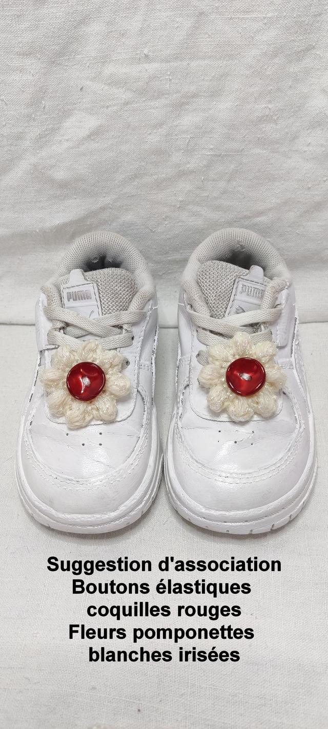 Ils sont conçus pour recevoir des fleurs crochetées interchangeables. Changer de fleurs selon votre humeur, personnalisez vos chaussures en un geste.