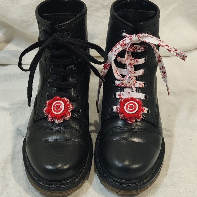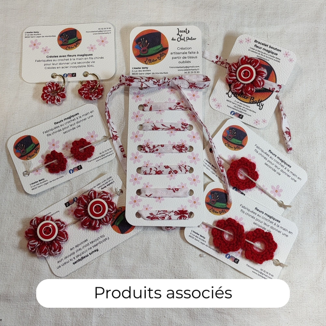 Les Lacets Flocons Rouges du Chat Pelier sont fabriqués à la main à partir de tissus chinés, soigneusement découpés, cousus et transformés dans mon atelier.