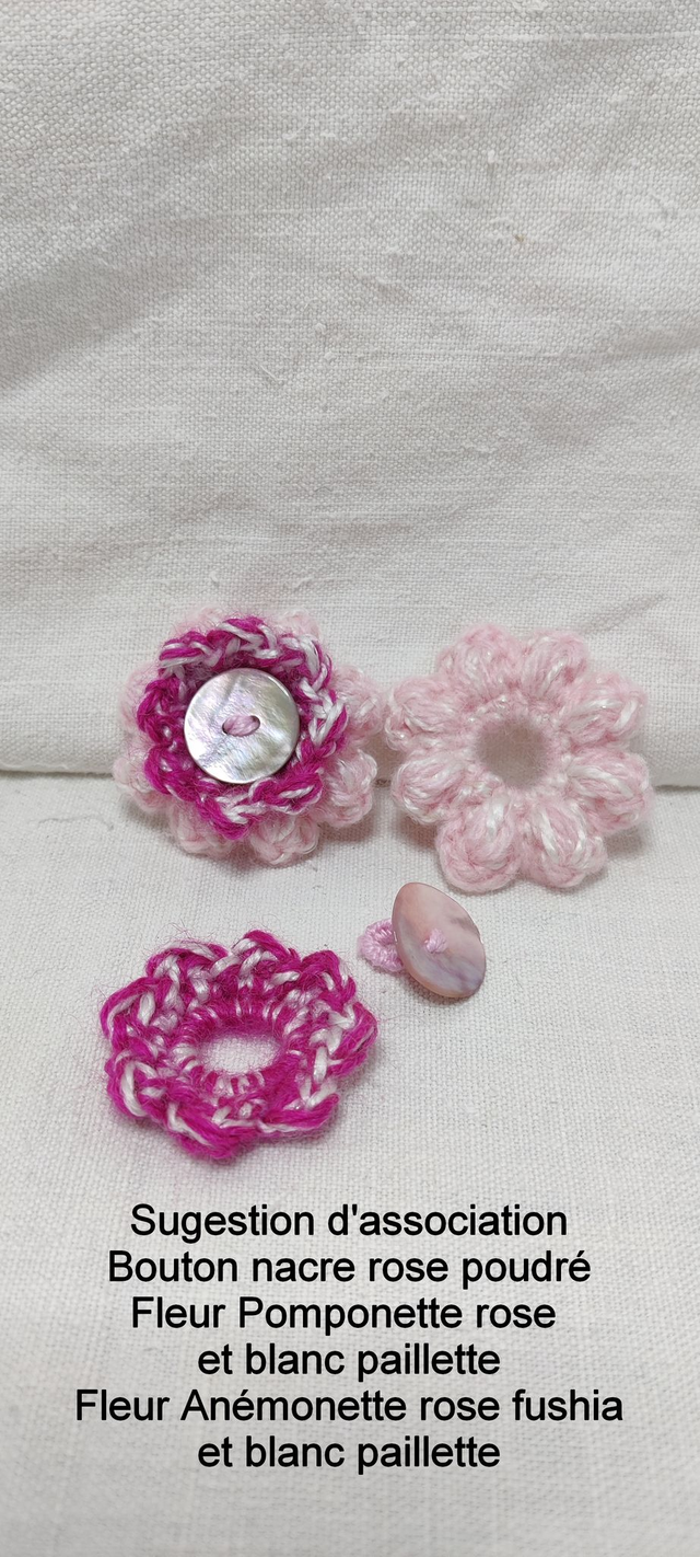 Fleurs pampilles pomponettes rose clair et blancs paillettes : 4,5cm de diamètre