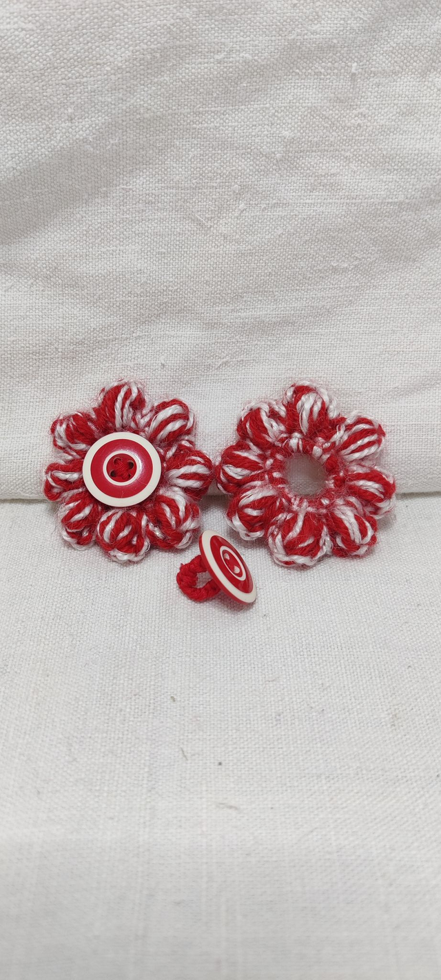 Fleurs pampilles pomponettes rouges et blancs paillettes : 4,5cm de diamètre